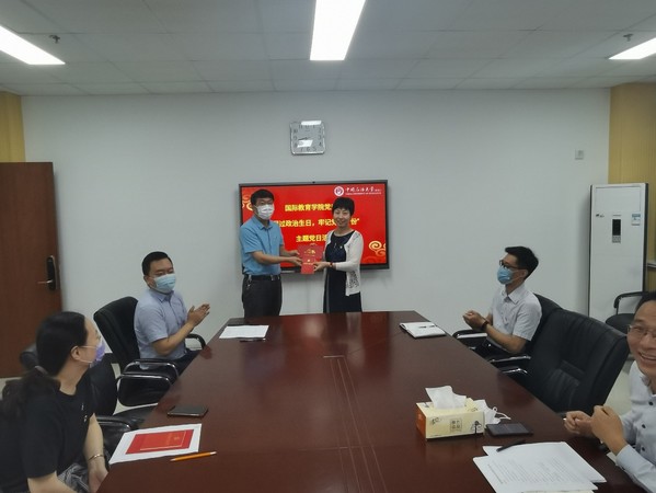 柴延松向过“政治生日”的党员表示衷心祝愿,希望每位党员牢记党员身份,不忘入党初心,发挥党员先锋模范作用,进一步增强服务机关和学校发展的自觉性、主动性、创造性。祝愿国际教育学院党支部充分发挥学院特色,将党建工作与业务工作深度融合,创新开展党建工作,切实发挥好党支部的战斗堡垒作用。