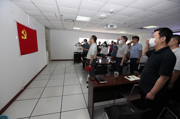 随后,支部全体党员面对庄严鲜红的党旗,高举右拳,重温入党誓词,回忆入党时的决心与理想。