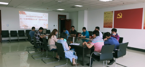 活动中,党支部书记成宏涛以《对“办值得尊敬的大学”的思考和认识》为题,带领大家学习学校相关精神,并结合两会会议精神和我处的工作实际,详细阐述了“办值得尊敬的大学”背后的内涵和深意,这一理念为学校塑造了美好的发展愿景,指明了今后一个时期的发展方向,推动了学校爱党爱国、崇尚学术、追求卓越的大学文化建设。