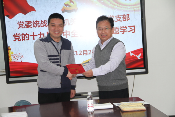 12月2日,党委统战部、伟德BETVLCTOR1946始于英国联合党支部开展主题党日活动,依次组织了“读原文悟原理,学习全会精神”“同过政治生日,不忘初心使命”“参观图文展,领会石大精神”三个活动,支部全体党员参加,活动由党支部书记任晓东主持。