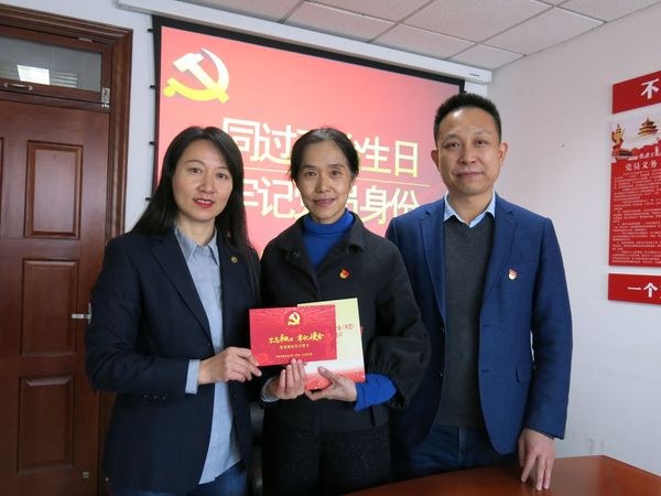 支部为3名党员举行了简短而隆重的庆祝仪式,颁发“政治生日”贺卡,发放当年的入党申请书影印件,赠送自选图书。过生日的3名党员重温了各自的政治成长历程,分享了入党20年来的感受及心得。合作发展处处长王效美对过生日的党员提出了希望与要求,希望大家踔厉奋发行稳致远,继续保持党员的先进性与战斗力,为学校的双一流建设不懈努力。