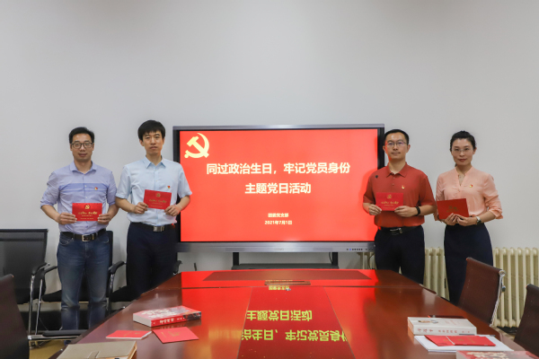 随后,党支部为全体党员集体过“政治生日”。通过庄重的仪式感,强化党员政治身份认同,增强党员责任感、荣誉感和归属感,激励全体党员时刻不忘初心、牢记使命。党支部书记石国卿向过“政治生日”的4位党员同志表示祝贺,赠送党支部精心准备的生日礼物和生日贺卡。会上,4名党员同志回忆起自己的入党经历,分享自己自入党以来的磨练与成长,填写生日贺卡,感谢党的培养。支部党员同志高举右拳,重温入党誓词,坚定入党初心。