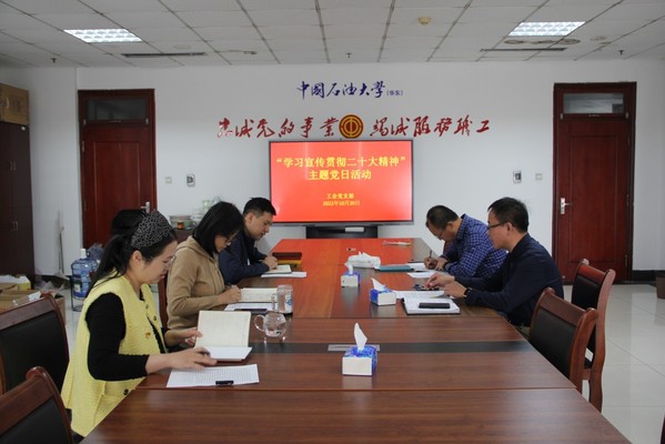 大家结合工作,畅谈学习心得,纷纷表示,要把学习宣传贯彻党的二十大精神作为当前首要政治任务,落实举措扎实干,持续推进新时代工会工作创新发展。党支部书记、工会主席王德钊说,要将学习宣传贯彻党的二十大精神与学校发展大局结合起来,与工会重点工作任务结合起来。把工会工作放到新时代党对群团组织的新要求中定位,放在学校创建双一流建设的新使命中把握,放在教职工对美好生活、幸福石大的新期盼中衡量,做好思想引领、建功立业、维权服务、改革创新等重点工作,为建设中国特色能源领域世界一流大学贡献工会力量。